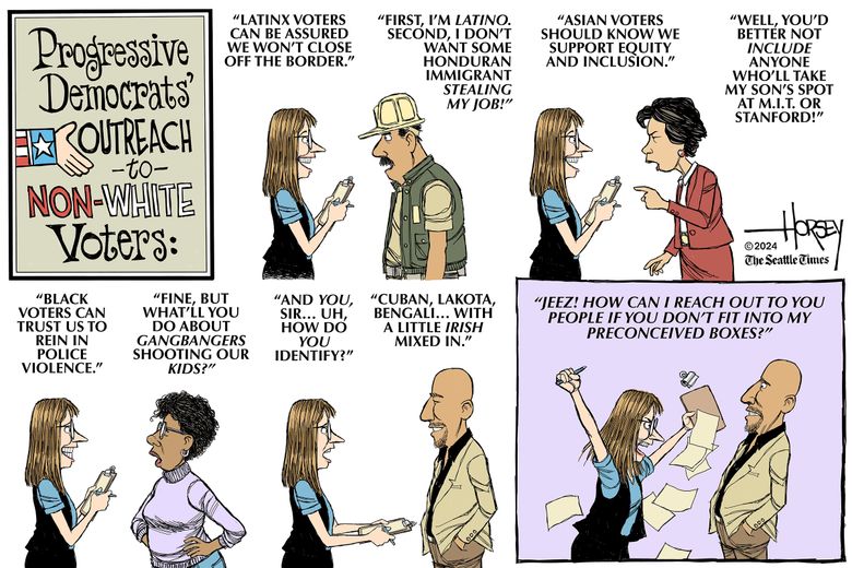 The Democratic Party seems to have an unhealthy enchantment with identitarianism. It is both absurdly naive and alarmingly at odds with American values to categorize people by race. At its core, this infringes upon the worth and free will of voters who may or may not choose to define themselves by inherent traits. The concept of ‘white guys’ holds no distinction beyond a physiological one.